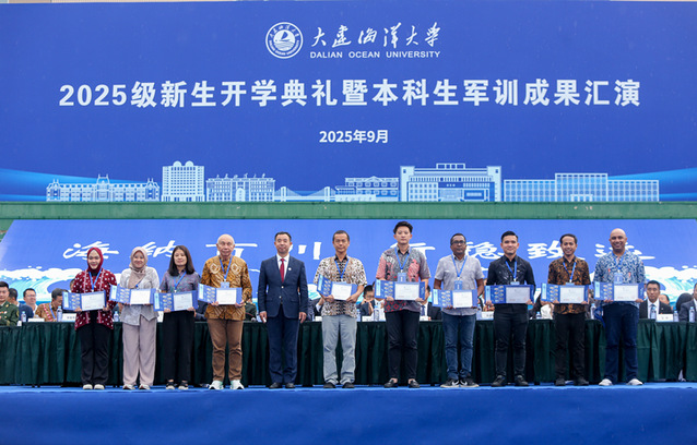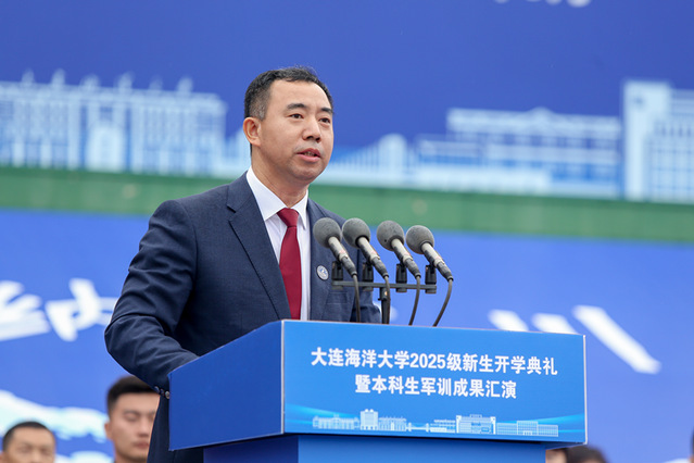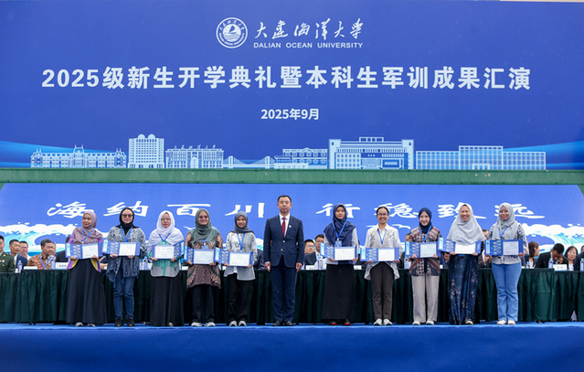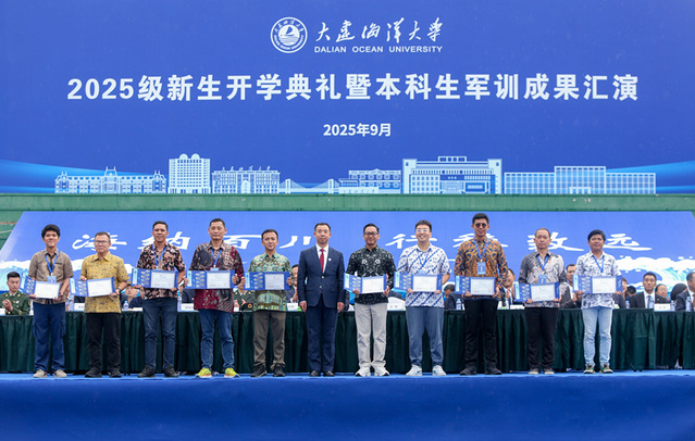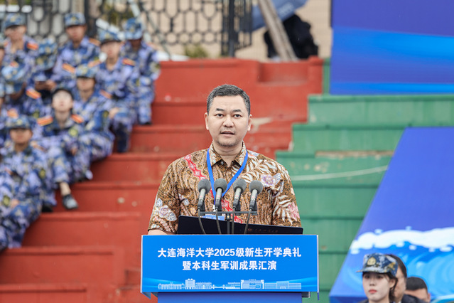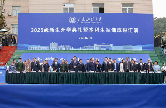 9月19日,我校2025级新生开学典礼暨本科生军训成果汇演在黑石礁校区、瓦房店校区同步举行。学校官方视频号、微赞直播平台同步直播典礼活动,在线直播观众达到1.8万余人,获点赞10.3万。校党委书记衣庆焘、校长杜明、校党委副书记李智军、校纪委书记汤尔利、副校长刘文合、校长助理卢昆出席活动。学校各学院院长、书记,各学院分管本科生、研究生工作领导,有关部门负责人,各系主任、专业负责人,各学位授权点负责人,导师代表,全体新生辅导员和2025级本科生、研究生,校友代表以及参加国家发展改革委“新质工匠”职业技能培训项目的印度尼西亚共和国全体学员现场参加典礼活动。典礼由李智军主持。