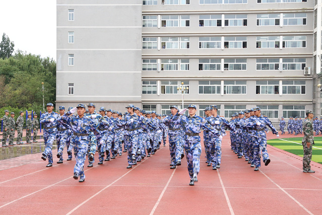 伴随着衣庆焘坚定有力的一声口令“按计划进行”,军训成果汇演正式开始。在激昂的检阅曲中,由92名军训教官组成的教官方阵和由各学院辅导员带领的46个本科生连队昂首行进,以嘹亮的口号、饱满的精神接受检阅。