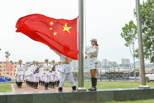 在雄壮的国歌声中,五星红旗冉冉升起,典礼正式拉开帷幕。